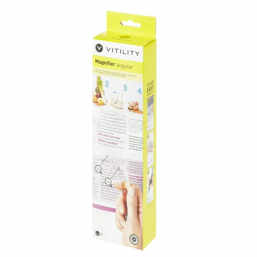 Vitility Vergrootglas AngularVitility Vergrootglas Angular is een rechthoekig gevormd vergrootglas voor onder meer het lezen van kleine letters. Dankzij het handvat is het vergrootglas gemakkelijk vast te houden. Vanwege het compacte formaat is het vergrootglas makkelijk in uw tas mee te nemen.